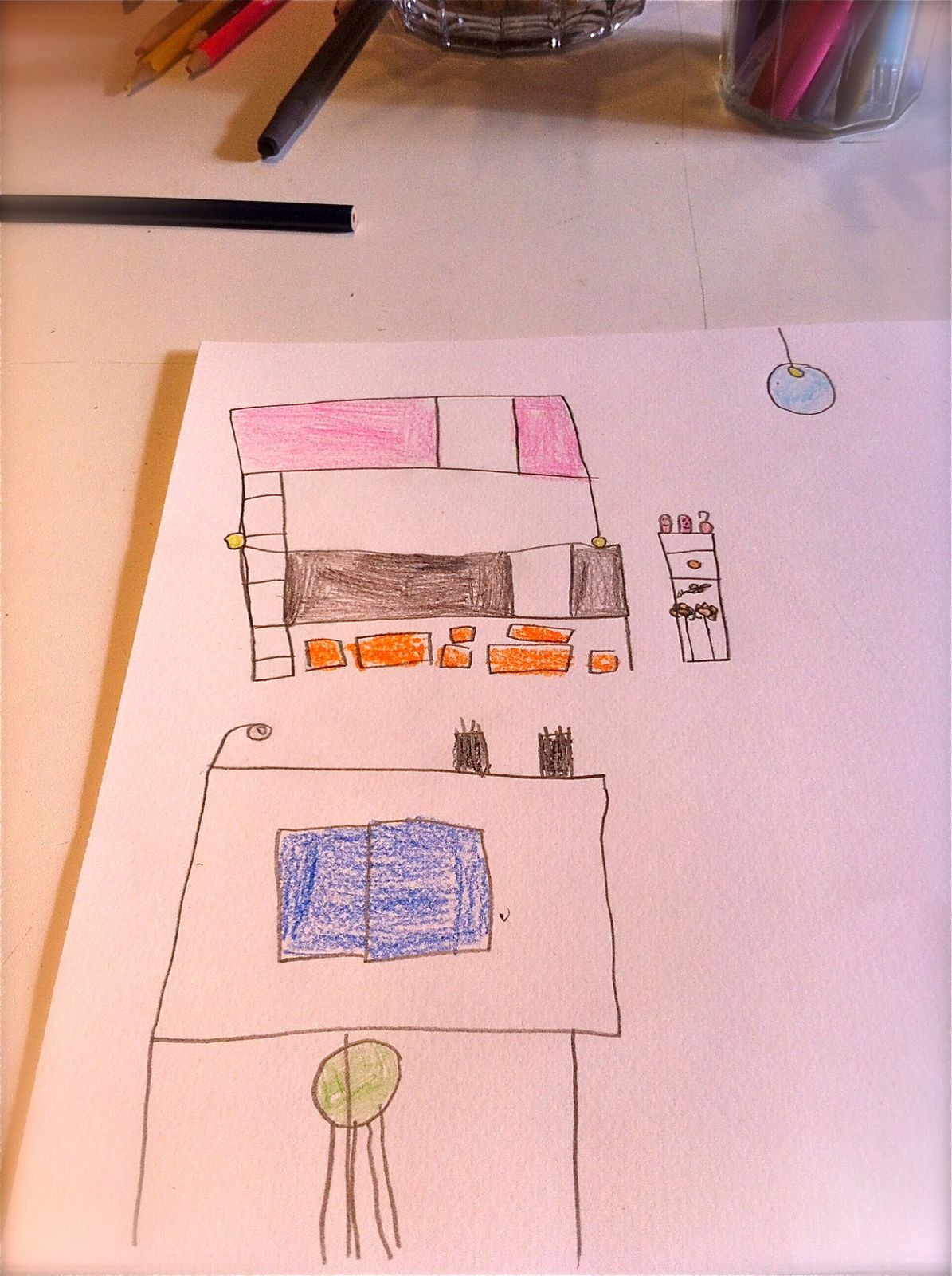 Ils ont pris conscience qu'il y avait plusieurs plans dans une pièce, que l'on pouvait dessiner ( avec plus ou moins de difficultés ! ) des éléments devant d'autres et ainsi reproduire à peu près tout de sa chambre....Bravo !!