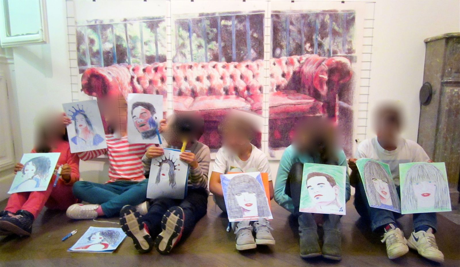 Les enfants ont été à la fois émerveillés, interrogatifs, surpris et conquis par le réalisme des dessins....Ce qu'ils ont préféré et de loin, c'est le "Canapé" devant lequel ils ont pu poser !!